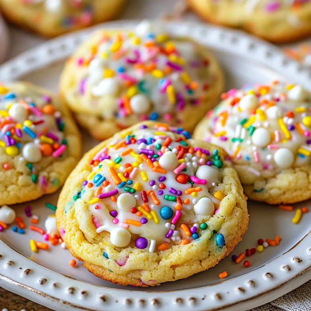You can switch up the funfetti cookies to create new flavors. One great option is chocolate funfetti cookies. To do this, simply add 1/2 cup of cocoa powder when mixing your dry ingredients. This will give you a rich and tasty chocolate base. Fold in the rainbow sprinkles as usual for that fun, colorful surprise!