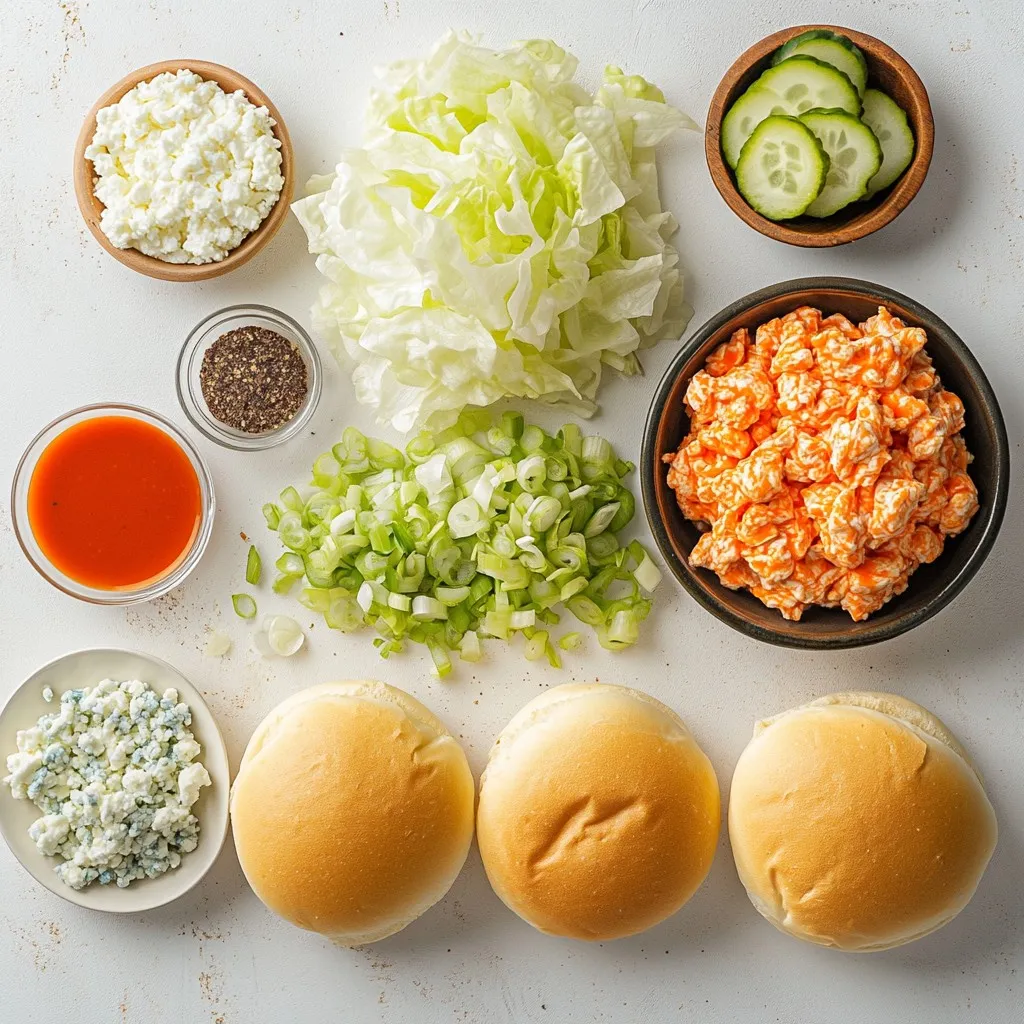 The main ingredients for spicy buffalo chicken sliders are simple but packed with flavor. You will need ground chicken to form the base. Buffalo sauce gives the sliders their kick. Cream cheese adds creaminess and helps bind everything together.