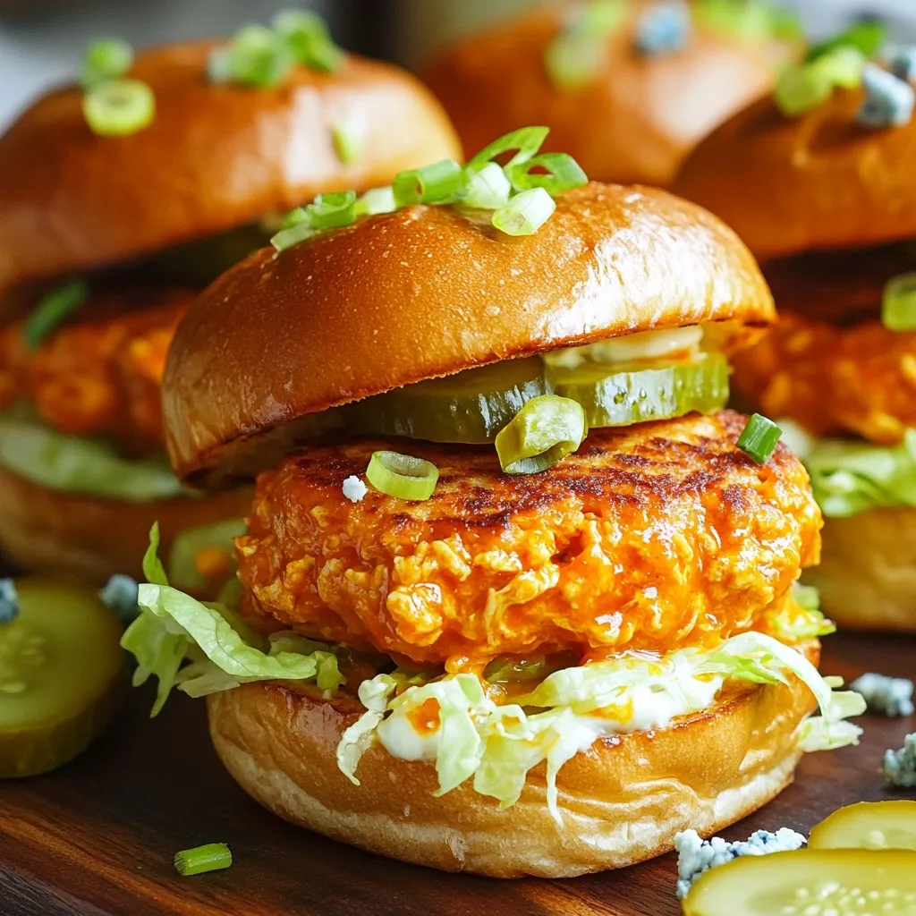 Garnish your sliders with extra green onions or fresh herbs. It adds color and makes them pop. You can also serve extra buffalo sauce on the side for dipping.