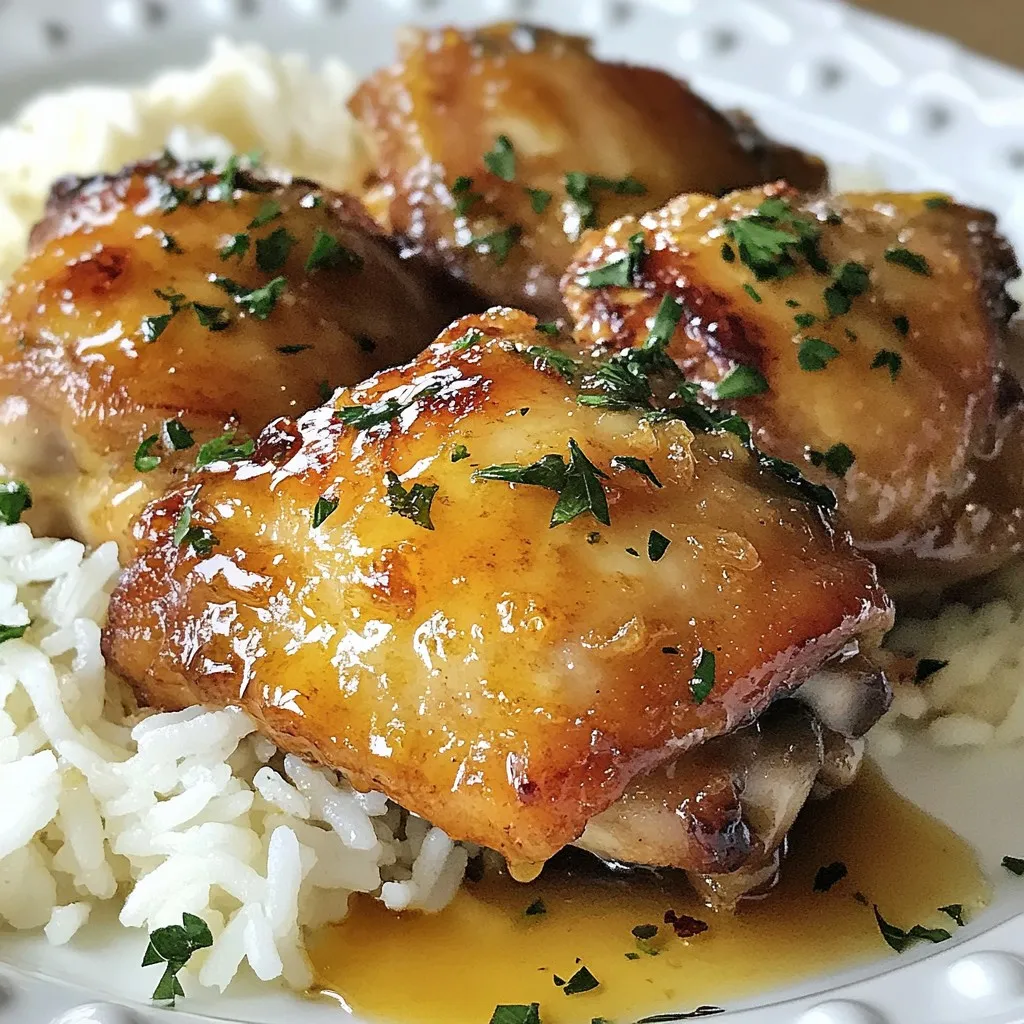 Individual plating is a great option for gatherings. Place each chicken thigh on a plate. Add a scoop of rice or veggies. Drizzle with sauce and top with parsley for a polished look. Enjoy the smiles as you serve this delicious dish!
