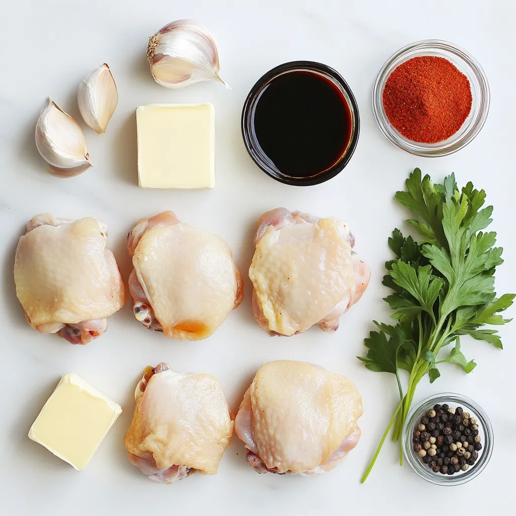 These ingredients work together to create a sweet and savory dish. The chicken thighs are juicy and tender. Honey adds a sweet touch, while butter gives a rich flavor. Garlic brings warmth, and soy sauce adds depth. Apple cider vinegar cuts through the sweetness, balancing the taste. Smoked paprika gives a hint of smokiness, and black pepper adds a gentle kick. Salt enhances all the flavors. Finally, parsley adds a fresh pop of color when you serve the dish.