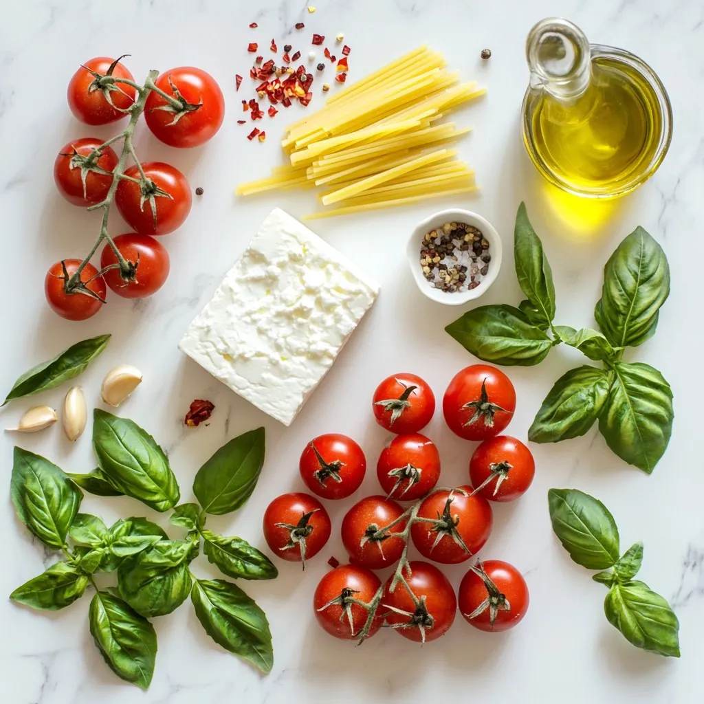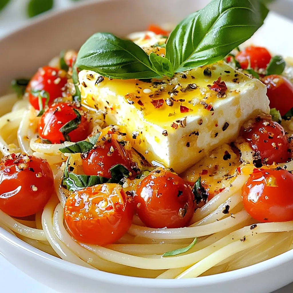 - 200g (7 oz) cherry tomatoes - 200g (7 oz) block of feta cheese - 250g (9 oz) pasta options (penne, fusilli, or rotini) - 4 cloves of garlic, finely minced - 3 tablespoons extra virgin olive oil - 1 teaspoon dried oregano - Salt and freshly ground black pepper to taste - 1 teaspoon red chili flakes for spice - 1 tablespoon lemon juice for brightness - Fresh basil leaves for garnish Gather these ingredients to make TikTok baked feta pasta. The cherry tomatoes burst with flavor as they roast, while the feta cheese melts into a creamy sauce. You can pick any pasta you like, but I love using penne or fusilli. They both hold the sauce well. The garlic adds a nice kick. The olive oil makes everything rich and smooth. Don't forget the dried oregano; it gives a lovely herbal taste. If you like some heat, red chili flakes are a great choice. For a zesty touch, add lemon juice. Finally, top it all off with fresh basil for that perfect finish. These ingredients are simple yet come together to create a dish that feels special. Make sure you have everything on hand before you start cooking! {{ingredient_image_2}} 1. Preheat your oven to 400°F (200°C). This makes sure everything cooks evenly. 2. Grab a large baking dish. Spread the cherry tomatoes evenly in the dish. 3. Create a spot in the middle for the feta cheese block. Place it right there. 4. Drizzle 3 tablespoons of olive oil over the tomatoes and feta. It adds great flavor. 5. Sprinkle 4 minced garlic cloves, 1 teaspoon of dried oregano, and chili flakes if you want spice. Add salt and black pepper for taste. 1. Place the baking dish in the hot oven. Bake for 25-30 minutes. The tomatoes should blister and the feta should melt. 2. While that bakes, cook 250g of pasta according to package instructions. Look for the word "al dente," which means it should be firm but not hard. 3. Once the pasta is done, drain it. Be sure to save a cup of pasta water for later. 1. After baking, take the dish out of the oven. Use a fork to mash the feta into the tomatoes. This creates a creamy sauce. 2. Add the drained pasta to the baking dish. Pour a splash of the reserved pasta water in. It helps make the sauce creamy. 3. Toss everything together gently. Make sure the pasta is covered with the sauce. 4. If you like, squeeze a tablespoon of lemon juice over the pasta for a bright burst of flavor. 5. Serve hot and top with fresh basil leaves for a nice touch. To ensure a creamy sauce, mix in a bit of reserved pasta water. This helps the sauce stick to the pasta. If you want to change the pasta type, feel free to use penne, fusilli, or rotini. Each type gives a different texture that works well. For a better aroma, use fresh garlic. When you mince it, let it sit for a few minutes before using. This helps release its oils. If you like heat, adjust the spice level by adding more or less red chili flakes. Start with a pinch and taste as you go. To make a complete meal, pair your pasta with a side salad or some crusty bread. The crunch of the bread complements the creaminess of the dish. For plating, use a large bowl to show off the vibrant colors. A sprinkle of fresh basil on top adds a nice touch and aroma. Pro Tips Choose the Right Pasta: Opt for pasta that holds sauce well, like fusilli or rotini, to enhance the creamy texture. Quality Feta Matters: Use a high-quality feta cheese for the best flavor and creaminess; look for one packed in brine for extra moisture. Use Fresh Herbs: Fresh basil not only adds flavor but also brightens the dish; consider adding it just before serving for maximum freshness. Adjust Creaminess: If the sauce is too thick after mixing, add more reserved pasta water gradually until the desired consistency is reached. {{image_4}} You can easily swap ingredients to fit your tastes. If you want a vegan dish, use plant-based feta. Many brands offer great dairy-free options. You can also add more veggies for extra flavor and nutrition. Spinach is a wonderful choice. It wilts nicely and adds a fresh touch. Bell peppers add crunch and sweetness. Just chop them up and mix them in before baking. Want to spice things up? You can add protein to your pasta. Chicken, shrimp, or tofu all work well. Simply cook the protein separately and toss it in with the pasta. This adds heartiness and makes the dish more filling. You can also play with herbs. Try thyme for a floral note or rosemary for something earthy. Mixing different herbs can create a unique flavor profile. This dish is versatile. You can make a baked feta pasta casserole instead of serving it straight from the oven. Just layer the pasta and sauce in a baking dish and add cheese on top. Bake until bubbly and golden. Alternatively, enjoy it cold as a pasta salad. Just let it chill, then toss with some olive oil and fresh veggies. This makes a refreshing meal for hot days. After enjoying your TikTok baked feta pasta, store leftovers in airtight containers. Glass containers work best, as they help prevent odors. You can also use plastic containers, but make sure they close tightly. For refrigeration, let the pasta cool down before sealing. Place the container in the fridge within two hours. If you want to save it for longer, freezing is a great option. Just make sure to leave space in the container, as the pasta expands when frozen. To reheat, use a microwave or stovetop. If using a microwave, heat in short bursts. Stir the pasta between each burst to ensure even heating. If you use the stovetop, add a splash of water or extra olive oil. This keeps the pasta from drying out. After refrigeration, the sauce may seem thick. To bring back the creamy texture, add a little reserved pasta water. Stir well until it becomes smooth and creamy again. In the fridge, the baked feta pasta lasts about 3-4 days. Always check for signs of spoilage before eating. Look for changes in color or a sour smell. If anything seems off, it’s best to throw it away. You can use many types of pasta for this dish. I recommend: - 