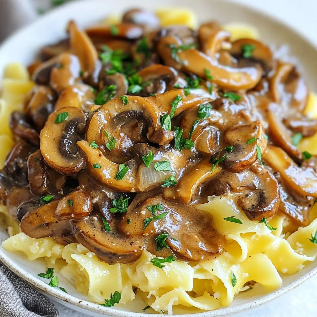 When you gather these ingredients, you set yourself up for a tasty dish. Seitan acts as the protein star. It mimics the texture of meat, making it a great choice for this stroganoff. Mushrooms add an earthy flavor that deepens the dish. Onions and garlic bring warmth and aroma, creating a perfect base.