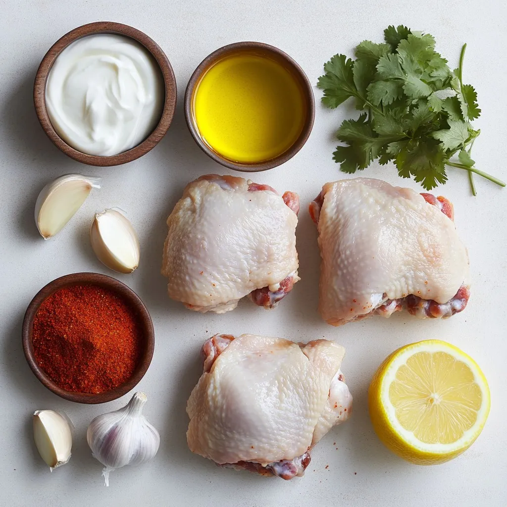 Tender chicken thighs marinated in a flavorful yogurt mixture and roasted to perfection.